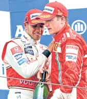 McLaren’s 22-year-old British rookie Lewis Hamilton was third but extended his lead over teammate and defending world champion Fernando Alonso to 14 points with his eighth podium finish in as many races.