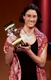 | Germany’s Birgit Prinz with the Fifa Woman World Player of the Year trophy in Zurich on Monday. (AP) |