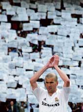 | Zidane acknowledges fans in his last home match for Real Madrid on Sunday. (Reuters) |