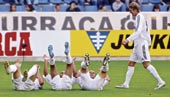 | Ronaldo, Robinho, Roberto Carlos and David Beckham celebrate Real’s goal at the Mendizorroza Stadium in Vitoria on Sunday. (Reuters) |