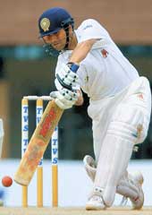 At close, Robin Morris (9) and Avishkar Salvi (0) were at the crease. Sachin was a cut above the rest. Though rival captain Sourav Ganguly tried everything at hand, it was of no avail as star batsman showed tremendous concentration in his first match for Mumbai since the Ranji Trophy final in 2001.