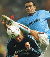 Zidane began the goalbound move a few metres inside the Celta half when he sprayed the ball wide to Figo who cut a first time pass to Ronaldo’s feet and the Brazilian took just one more step before cracking a precise right-foot shot past Cavallero to score his sixth of the season.