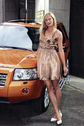 | Maria Sharapova poses in front of the new Land Rover Freelander 2 as she arrives for a pre-Wimbledon party in London. (AP) |
