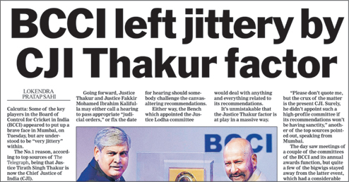 However, CJI Thakur was not impressed with the argument and bluntly told the senior counsel that there was no need for BCCI to give its views, as the panel (also comprising two other former Supreme Court judges - Justices Ashok Bhan and R V Raveendran) had given a "viable and rationale" report.