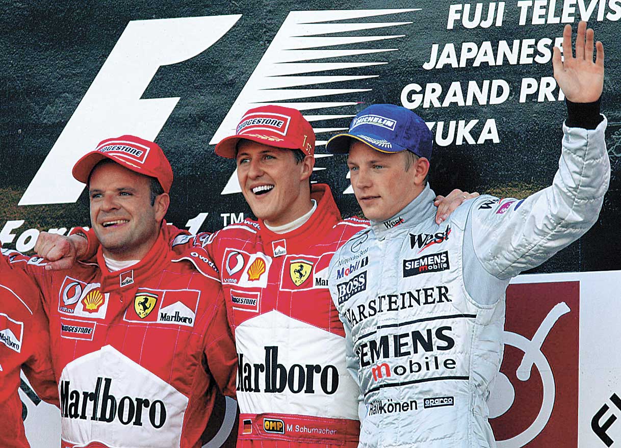 Brazilian Rubens Barrichello anchored Ferrari’s fifth successive one-two and ninth of the season, ahead of McLaren’s young Finn Kimi Raikkonen and the Williams of Colombian Juan Pablo Montoya.