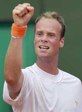 His victims include Spanish 1998 champion Carlos Moya, as well as German 11th seed Rainer Schuettler. He then booked his passage by swatting Argentine seventh seed Guillermo Coria 7-6 (7-4), 6-4, 7-6 (7-0) in a two-hour, 40-minute semi-final, firing down 19 aces and 62 winners. He is the first Dutchman to make the final here.