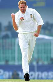 Earlier, resuming on 237 for two, the Pakistan middle-order collapsed due to a strong performance by Pollock with the second new ball. The 76-Test veteran grabbed three wickets in 21 deliveries while conceding just 10 runs. The right-arm seamer returned for his second spell and had tailender Mushtaq Ahmed leg before wicket and removed last man Kaneria as Pakistan lost eight wickets for just 111 runs and Pollock claimed his 16th five-wicket haul.