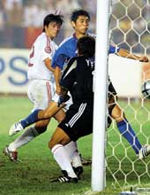 Japan beat hosts China 3-1 in Beijing on Saturday. Nakata scooped a Shunsuke Nakamura corner over the line in the 65th minute to give Japan the lead for the second time after the teams had started the second half level at 1-1.