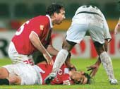Benfica striker Miklos Feher, who died of an apparent heart attack during a Portuguese league match on Sunday night, was the second international to die on the pitch in seven months. When the 24-year-old Hungarian collapsed to the rain-sodden pitch in injury-time of a televised match at Vitoria Guimaraes, it immediately brought back memories of Cameroonian Marc-Vivien Foe’s death in Lyon last year.