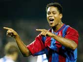 | Barcelona’s Dutch striker Patrick Kluivert after scoring the second of his three goals against Alaves in a Spanish first division match at the Nou Camp on Saturday. (Reuters) |