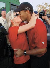 | Tiger Woods with wife Elin Nordegren after winning the Masters at Augusta National Golf Club on Sunday. (AP) |