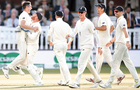 Anderson, Chris Woakes (who kept finding the edge) and Stuart Broad assumed demon-like proportions and swallowed the visitors. They were backed up by five in the slips.