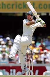 | Ricky Ponting on way to his 196 on the second day of the first Ashes Test at the Gabba on Friday. (Reuters) |