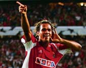 | ‘Beto’ Santos after scoring Benfica’s second goal against Manchester United in Lisbon on Wednesday. (Reuters) |