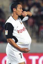 | Valencia’s Ricardo Oliveira takes possession of the ball following his hattrick against Real Mallorca in a Spanish League match in Mallorca on Sunday. (AFP) |