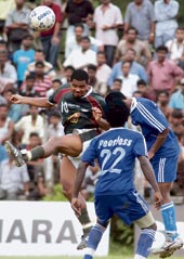 Peter Siddiqui got a perfect header to finish off a James corner in the 27th minute. A minute before half-time, Saheb Ali blocked Barreto inside dangerzone and referee Rathin Mukherjee promptly signalled penalty. The Brazilian slotted the ball home easily to notch up his seventh goal of the league.