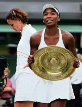 The 25-year-old, who also won Wimbledon in 2000 and 2001 before losing the next two finals to her sister Serena, has suffered from poor form over the last two years and was seeded 14th in the draw, making her the lowest seed to win the title in Wimbledon history.
