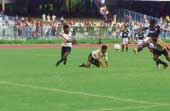 Mohammedan Sporting were down to ten men in injury time when Amjad Ali Khan was marched out following a second booking for rough play. Amjad, meanwhile, had also injured his toe badly and had to be stretchered off.