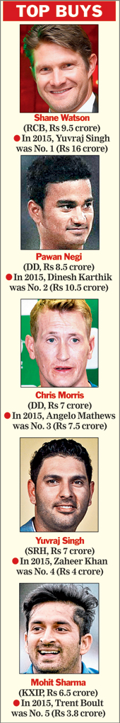Among DareDevils’ major overseas buys was South African Morris, who had a base price of Rs 30 lakh. Kolkata Knight Riders was in the race until it backed out at Rs 6.5 crore.