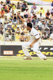 | Anil Kumble seeks the umpire?s verdict at the Eden on Friday. Picture by Santosh Ghosh |