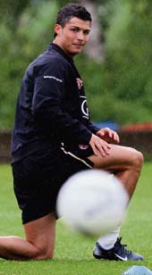 | Cristiano Ronaldo during a training session in Manchester on Wednesday. (AFP) |