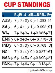 Australia and South Africa have already qualified for the last-four stage, while the West Indies, England and India are competing for the remaining two places. The Caribbean side have exhausted their quota of matches and have finished with 7 points after their last game, against South Africa, was washed out.