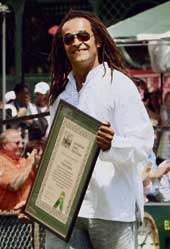 | Yannick Noah of France with his certificate after being inducted into the Hall of Fame in Newport on Saturday |