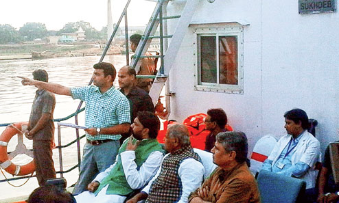 When the steamer was about to reach Gai Ghat, where the inspection concluded, Manjhi left his chair and started waving at the people on the riverbank. But only a few responded, as they were more interested in watching the steamer full of cops.