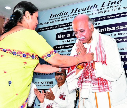 Guwahati, July 9: The international working president of the Vishwa Hindu Parishad (VHP), Pravin Togadia, a qualified cancer surgeon, today donned the doctor's coat here when he launched a helpline (186023336666) that aims to provide free medical consultancy to the poor.