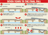 Around 1.10pm today, a pillar caved in, as a result of which the Bailey bridge shot up in the air and a breach was created. Labourer Rezaul saw it going up like an end of a seesaw.