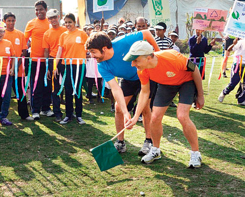 | Tad Brown (in blue) at a Wetlands run in February |