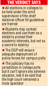 Some academicians welcomed the court’s order, saying student unions responsible for turning campuses into a cauldron had it coming. A few like the vice-chancellor of a state university, however, questioned how a chief electoral officer could oversee elections governed by rules framed for individual institutions.