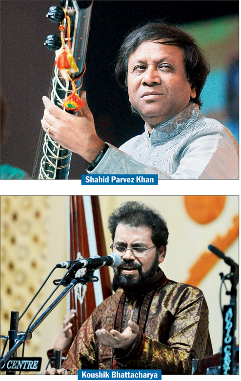 Artistes on the opening night of the 62nd edition of The Dover Lane Music Conference, presented by Desh, at Nazrul Mancha on Wednesday. Pictures by Sanjoy Chattopadhyaya