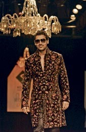 | John Abraham was the final showstopper on the last day of Kolkata Fashion Week, held in association with t2 at the PC Chandra Gardens. “Khub bhalo, prochur bhalo,” he smiled, when asked how it felt to walk in Bipasha’s hometown. Bips, on her part, should watch every breath of poison air her boyfriend takes in her hometown. Picture by Pabitra Das |