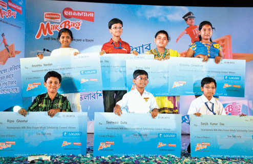 The seven winners of the Anandamela Milk Bikis presents Future Minds Scholarship. Students from over 100 schools from Calcutta took part in the competition, answering questions on their ambitions, what they would do if their dreams were fulfilled and why. The finals saw 105 students compete in seven categories — medicine, engineering, art, music, science, sports and acting. The children were given the opportunity to spend a day with a mentor from the chosen field. The mentors included Bikash Sinha, Subrata Maitra, Sabyasachi Chakraborty and Sambaran Banerjee. The finalists had to pen their experiences and the winners were selected on the basis of the best answers.