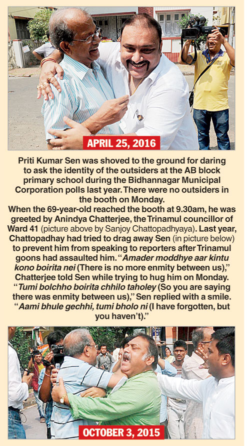 Priti Kumar Sen, the 69-year-old whose face had mirrored the helplessness of voters during the violence in Salt Lake last year, said he was pleasantly surprised by what he saw on Monday morning.