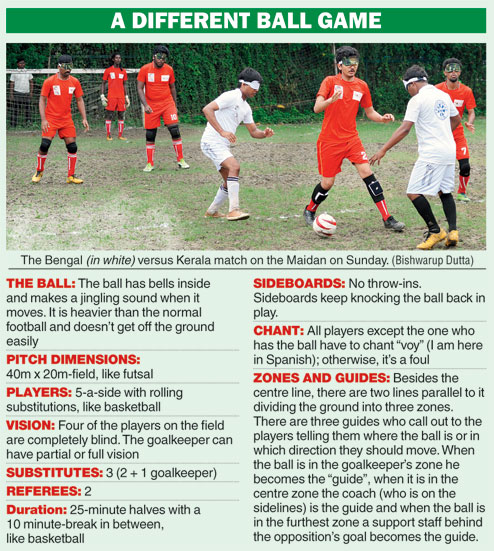 The match that saw Bengal defeat reigning national champions Kerala in a tiebreaker marked the Maidan debut of blind football at a time eight teams are fighting it out at the Paralympics in Rio.