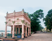 The Durgacharan Rakshit Ghat is a prominent landmark on the strand. Built in the 1920s to honour Durgacharan Rakshit, a recipient of the French award of Legion d’honneur, the pavilion consists of slender columns with decorative stucco works consisting of elephant’s head and floral designs.