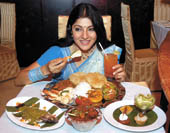 | Actress Locket Chatterjee digs into the New Year spread at Saffron. Picture by Rashbehari Das |