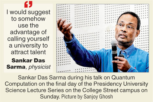 Indian-American physicist Sankar Das Sarma, counted among the brightest to have graduated from the College Street campus, put Presidency University’s rocky transition in perspective on Sunday with a comparison of then and now, them and us.
