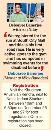“I have registered for the Senior Citizens’ Run and my son will be competing in the Champions with Disability category, both 4km races,” Kashinath said before heading for decked-out Park Street to give Kaushik, who is 36, a feel of the festive fervour.