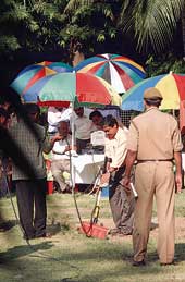 The anti-terror training underground was matched by trials above. On Thursday afternoon, a state-of-the-art gadget to detect buried improvised explosives was tested at Alipore Police Grounds, in the presence of state home secretary Prasad Ranjan Roy and senior cops (picture on left by Amit Datta).
