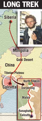 Sylvain Tesson, 31, a Paris-based travel writer, reached town three days ago after just such a journey on foot, on horseback and bicycle to follow in the footsteps of Slavomir Rawicz of Poland, who had fled the Gulag in 1941 and arrived in Calcutta a full year later. After that heroic walk, Rawicz, who is now 87 and lives in London, had written The Long Walk. Tesson read the book and decided he would do a Rawicz.