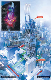 | An artist’s impression of the 250-metre office tower on Chowringhee |