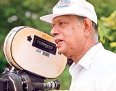 | Tapan Sinha at the shoot of Abhagir Swarga at Bolpur in 1996. A Telegraph picture |