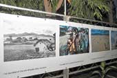 The exhibition begins with a black and white photograph taken in Kathmandu years ago, of open fields with a few scattered houses. Later in the exhibition is displayed a more recent, smaller photograph of the same place where every inch of space seems to have been taken up by houses. The barrenness of a wide expanse in the Island of Hispaniola with just stubs of trees is scary. The dull eyes of political prisoners of the Pol Pot regime in Cambodia stare out from another frame.