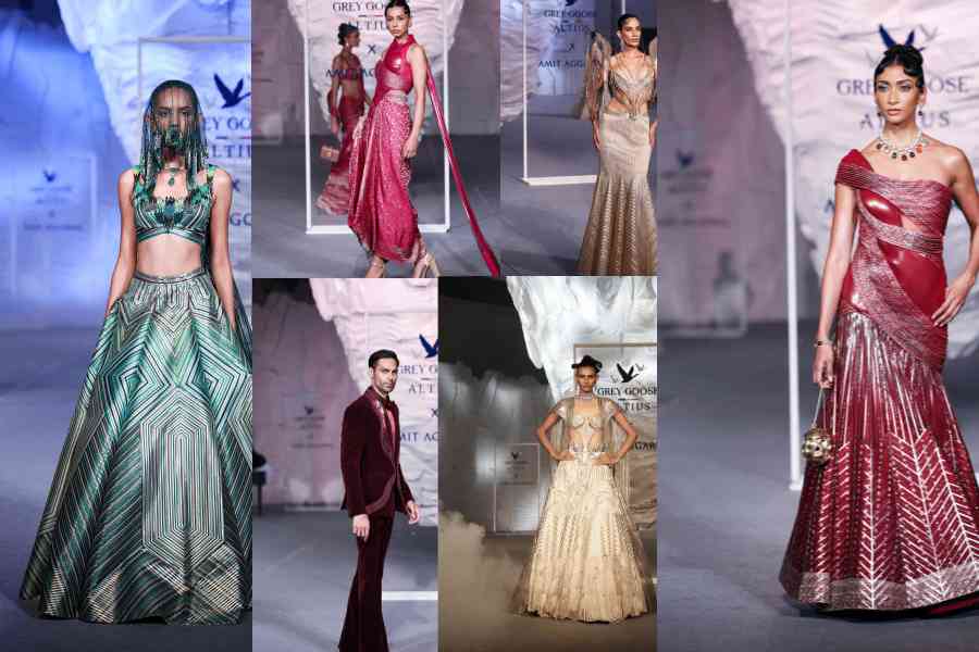 The Grey Goose Altius X Amit Aggarwal ‘Cocktail Couture’ at Delhi’s The Upper HSE by Tivoli, was sculptural and stark yet gorgeous and determinedly bold. Kalki Koechlin introduced the show, and a live piano performance by Sahil Vasudeva added to the mood.