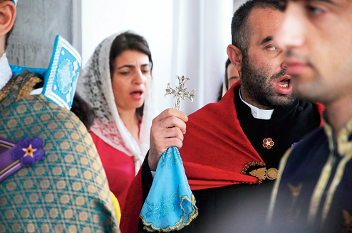 Father Geghart, assistant manager of Armenian College, who conducted the service (below) at the Armenian Holy Church of Nazareth to commemorate of the 100th anniversary of the Armenian Genocide