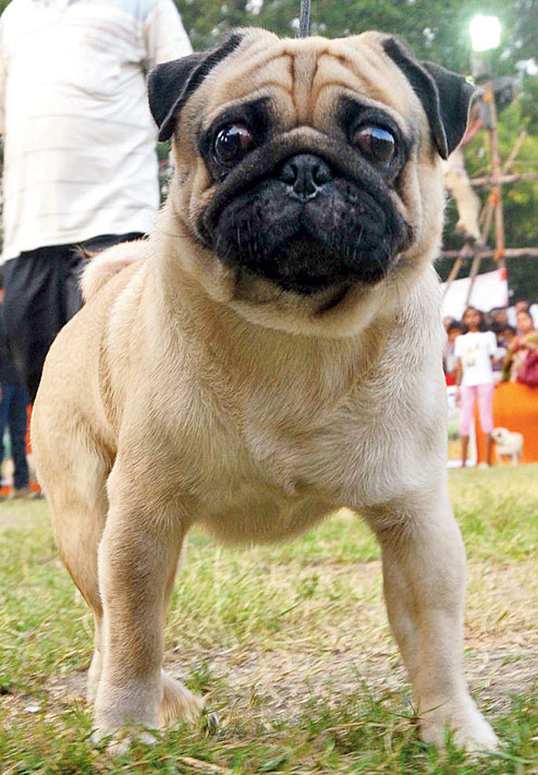 | A pug gazes at others at the dog show at Dumurjala |