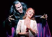 | Thomas Borchert as Count Von Krolock and Lucy Scherer as Sarah during a rehearsal for the musical Dance of the Vampires, directed by film-maker Roman Polanski, at Berlin’s Theater des Westens. (AFP) |